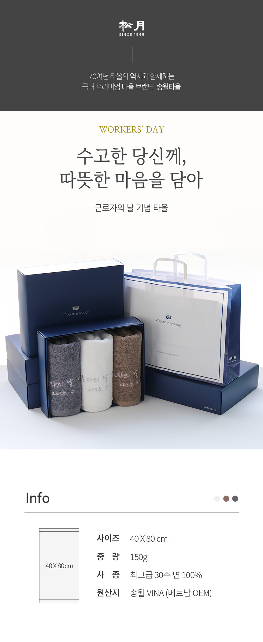 송월타올 근로자의 날 기념 타올 3입 선물세트