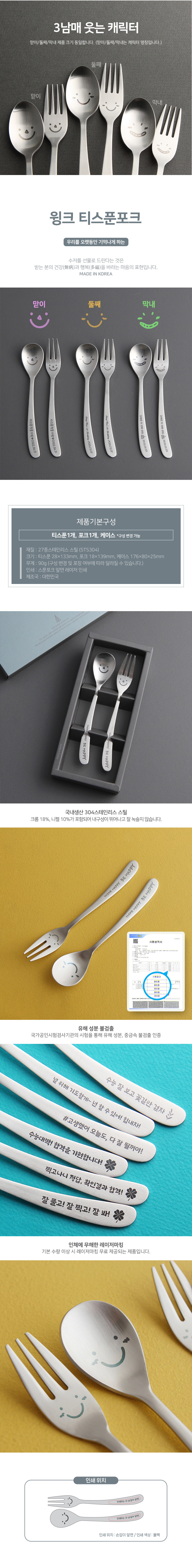 HAPPY 윙크 2P 돌/결혼/회갑/팔순/고희답례품 티스푼포크세트